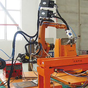 | 本產(chǎn)品由6軸機(jī)器人、二套全數(shù)字逆變PMIG電源、雙絲協(xié)同器、單熔池雙絲焊槍、自動(dòng)數(shù)字雙送絲系統(tǒng)、變位機(jī)與夾具、系統(tǒng)控制器等組成; |